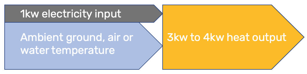 Heat pumps are incredibly efficient because they will typically use 1 unit of input energy to create 3 or 4 units of output energy. Image credit: Deeper Green