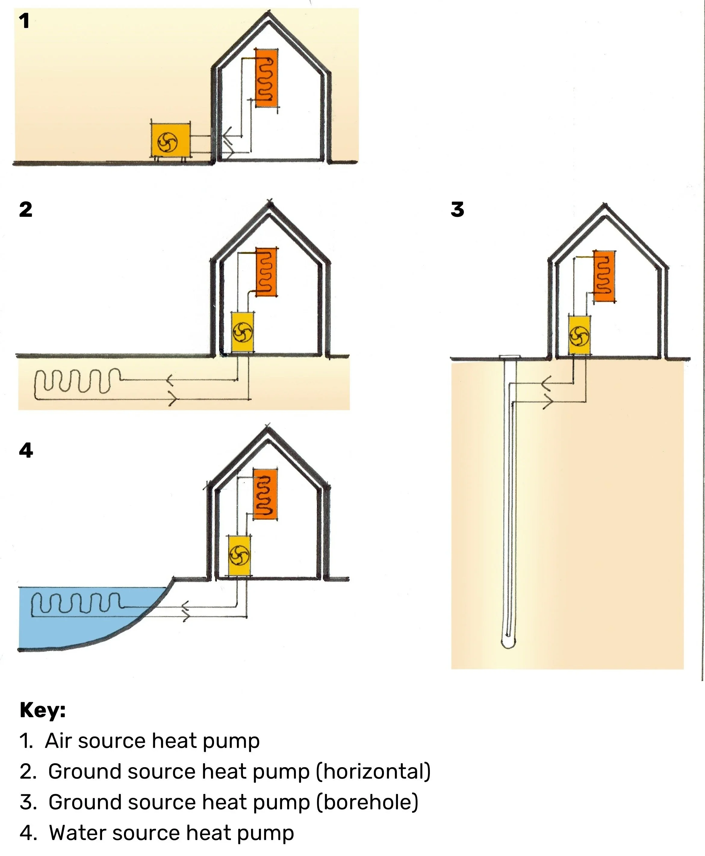 Heat pumps extract heat typically from air, ground or water. By far the cheapest of these technologies are air-source heat pumps. Image credit: Deeper Green